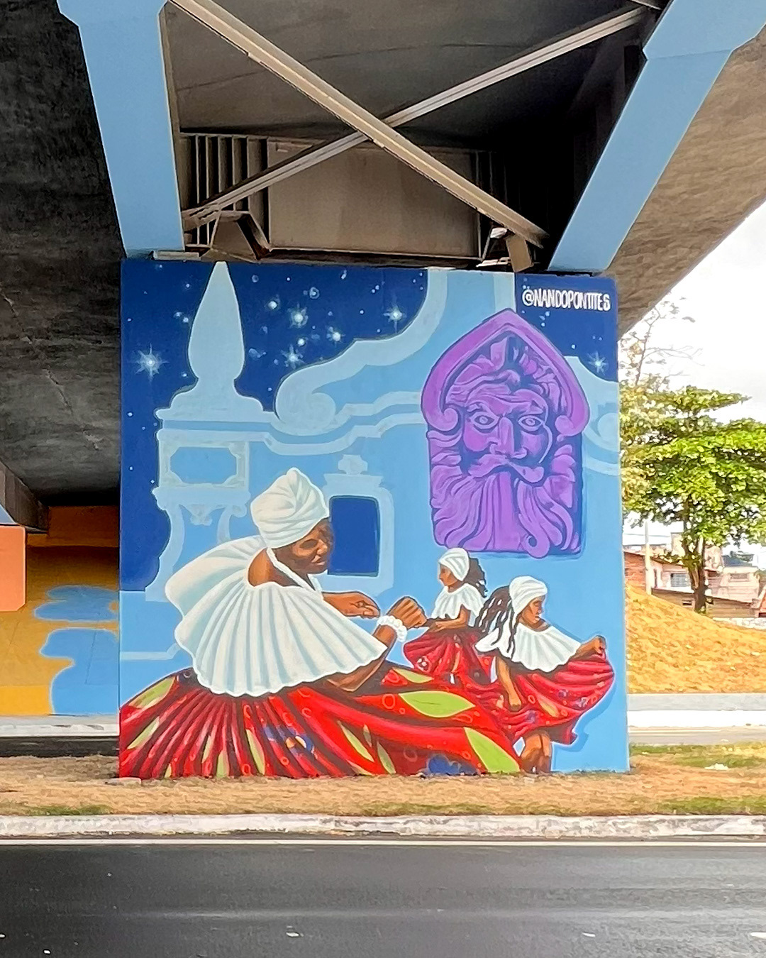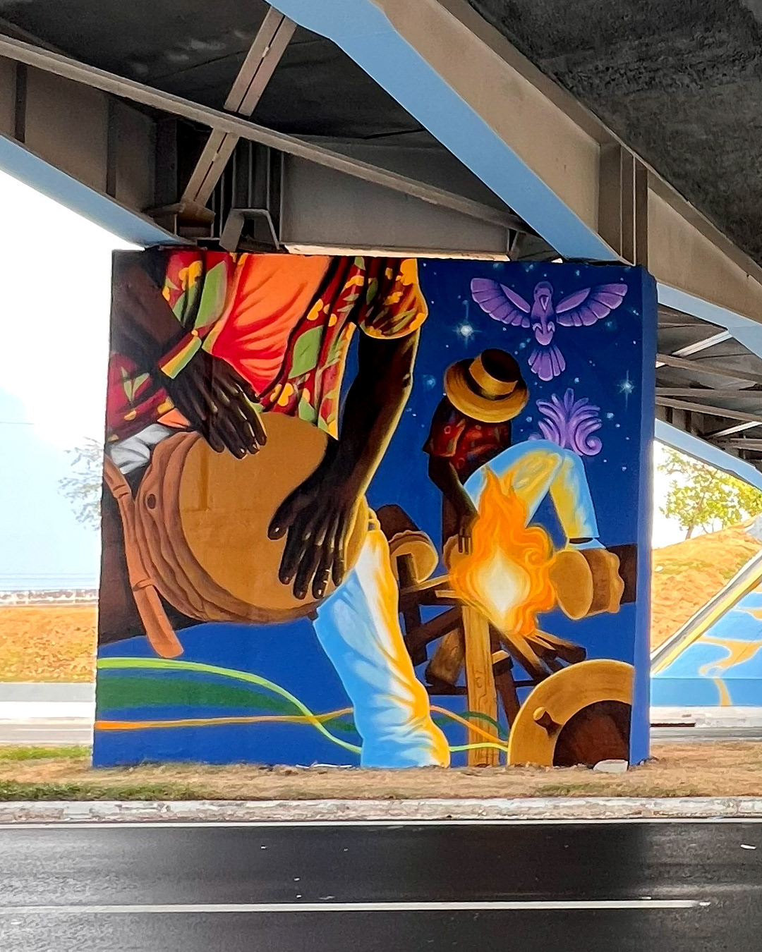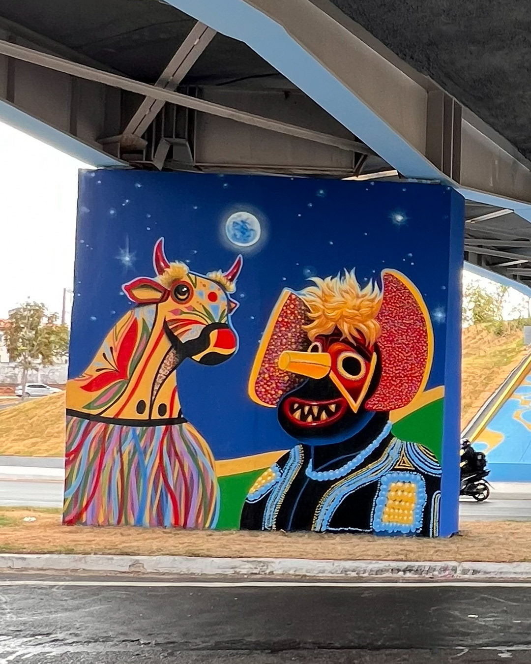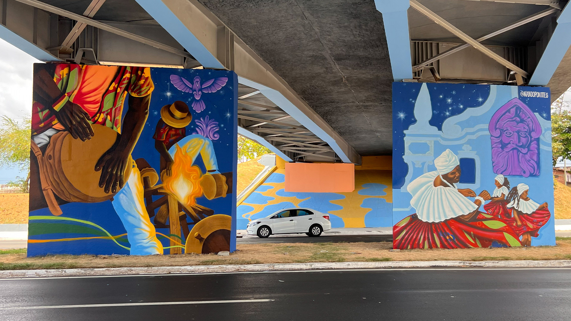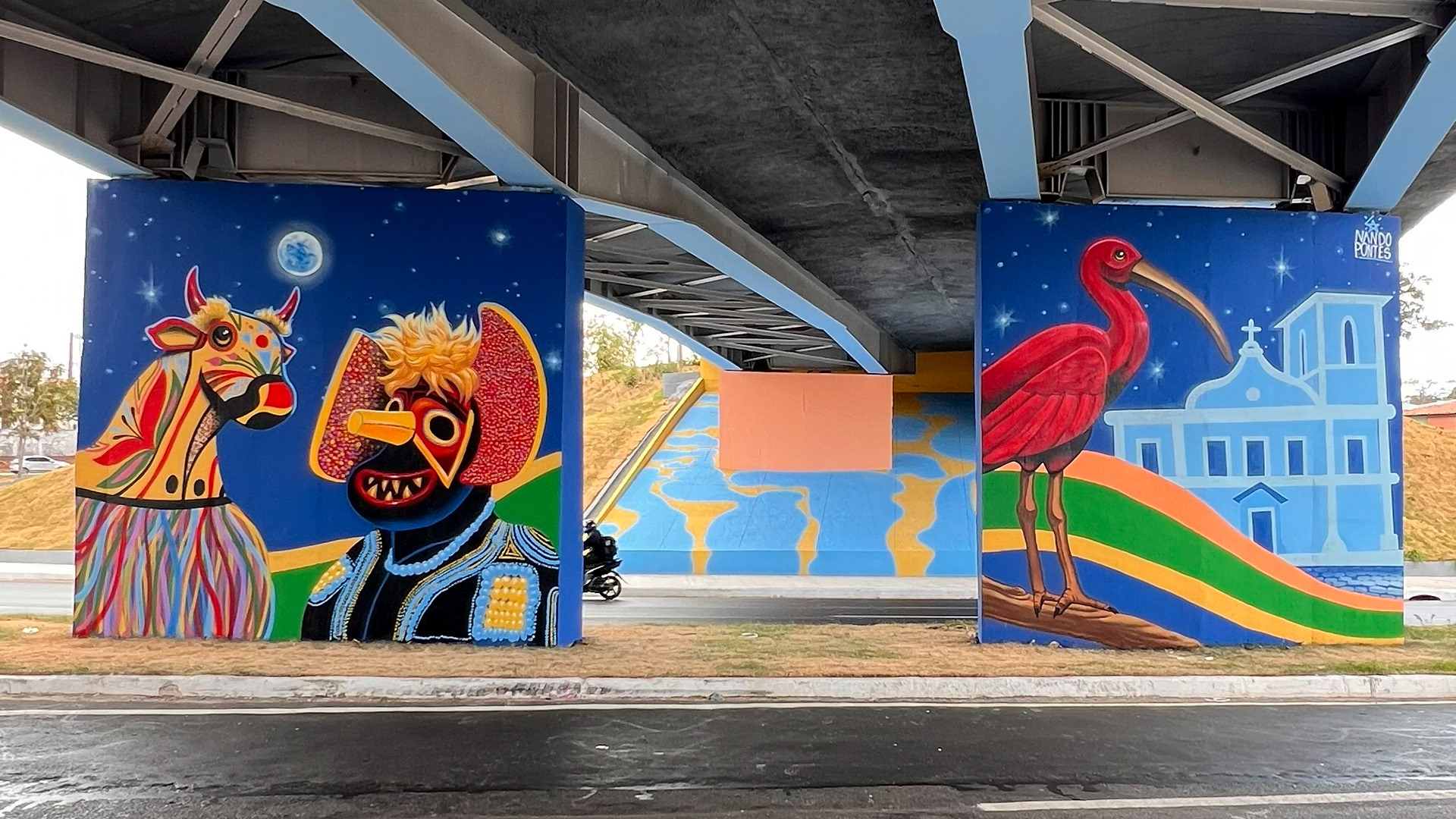 O título da obra é menção à famosa toada "Maranhão Meu Tesouro, Meu Torrão" do respeitado amo, cantor e compositor de Bumba-meu-boi Humberto de Maracanã. Além dos versos dessa canção outras vivências me fizeram de inspiração, como por exemplo, a força do Tambor de Crioula, que na Fonte do Ribeirão, tive a oportunidade de ficar hipnotizado com os tambores afinados rufando a noite toda, as coreiras com saias rodadas e floridas saúdam umas com as outras na umbigada, e tudo isso envolvido nas toadas cantadas. Nesse mural diverso em termos de símbolos, fiz uma menção às ruínas da Igreja de São Matias e a ave Guará trazendo duas referências fortes da cidade de Alcântara. Representando o Bumba-meu-boi a própria figura do Boi está presente no mural ao lado da mística figura do Cazumbá, um espírito da floresta evocado para dar vida novamente ao Boi. Como acabamento dos murais, as laterais do viaduto foram pintadas formas que representam de forma abstrata os lençóis maranhenses.