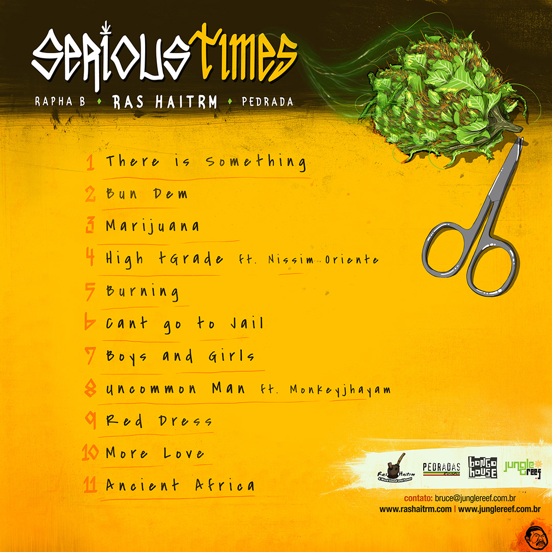 Projeto gráfico do disco Serious Times, do cantor moçambicano Ras Haitrm. Produzido por Pedrada (Ponto de Equilíbrio) e Rapha B (Caboclo Hi-fi)